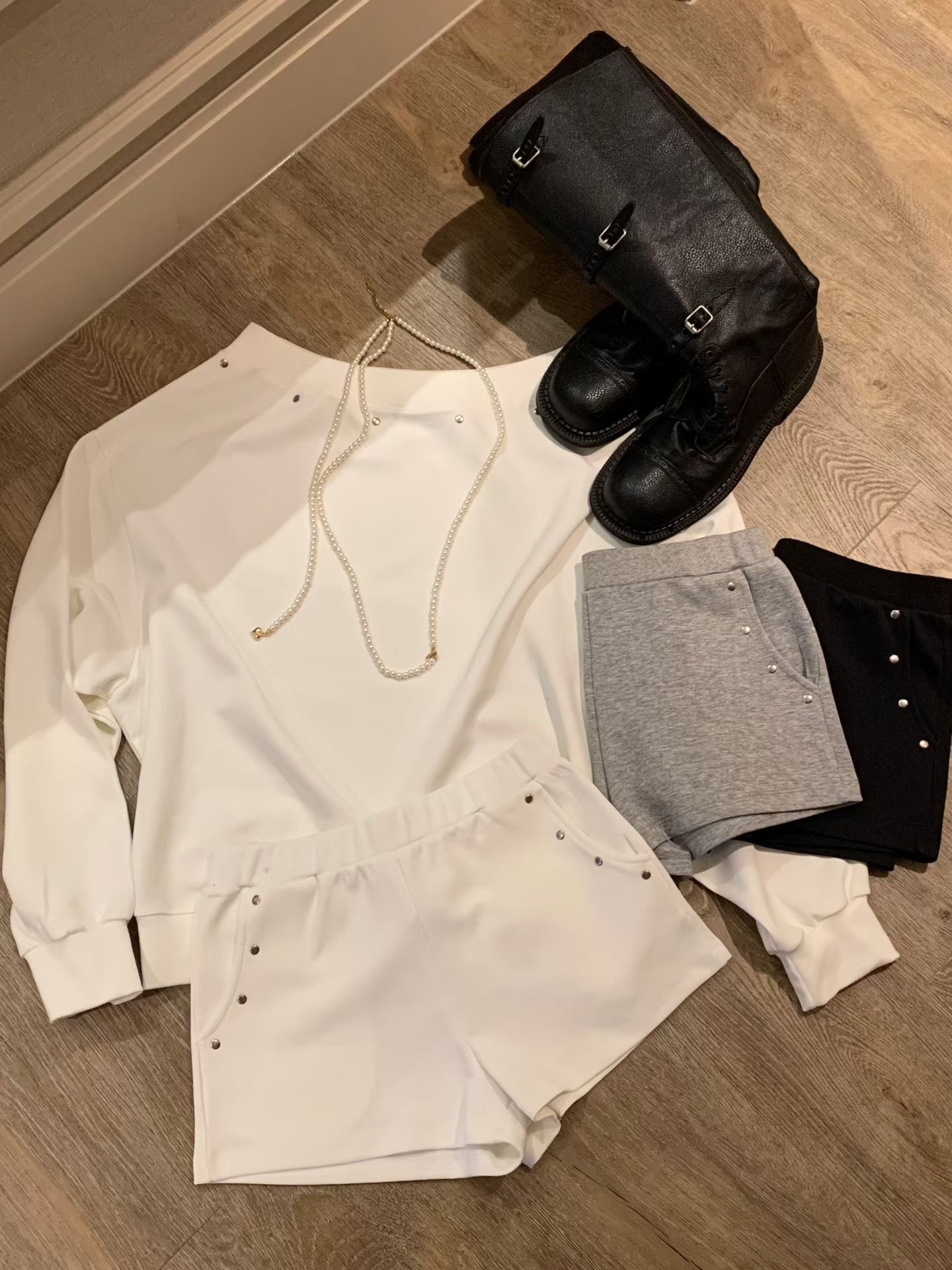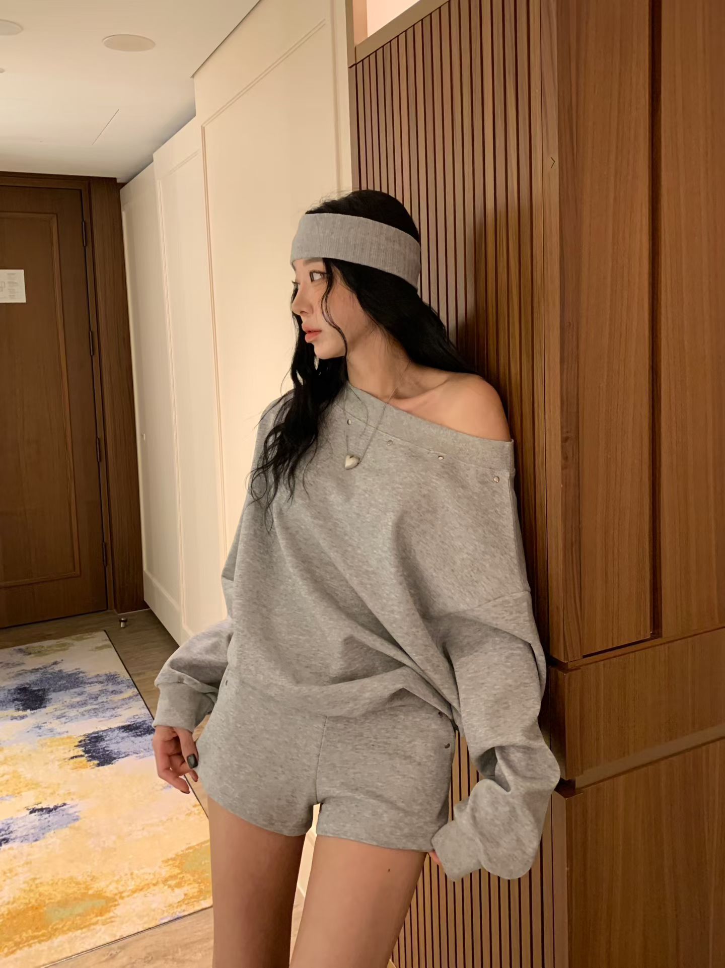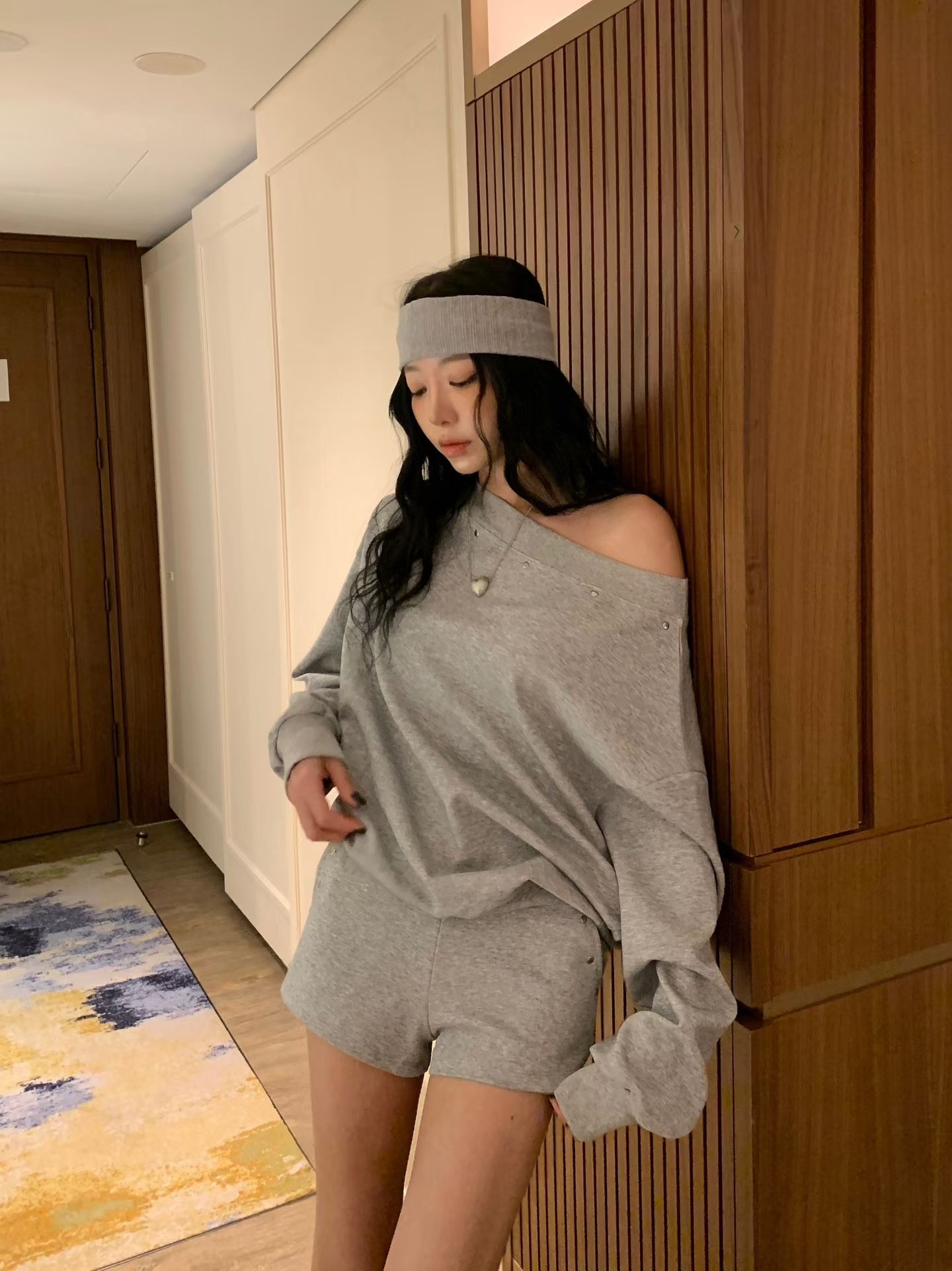 ♡正韓♡卯丁點斜肩休閒短褲套裝