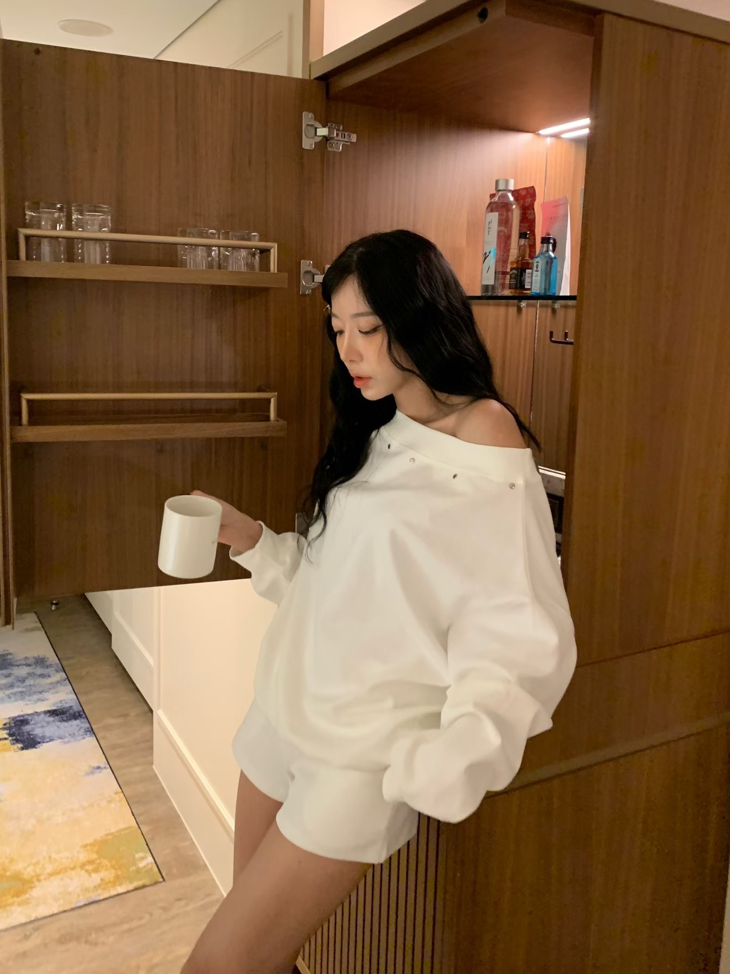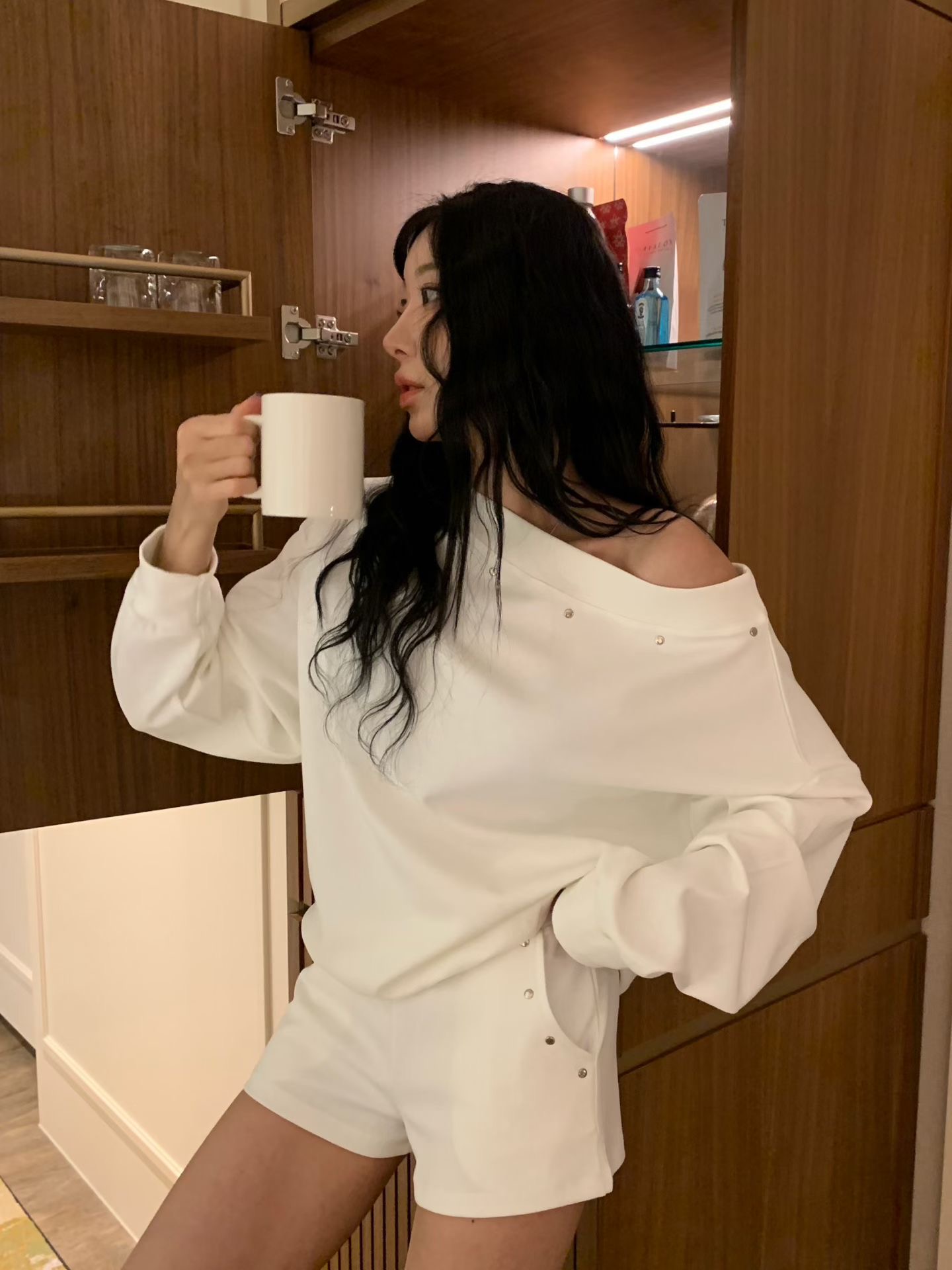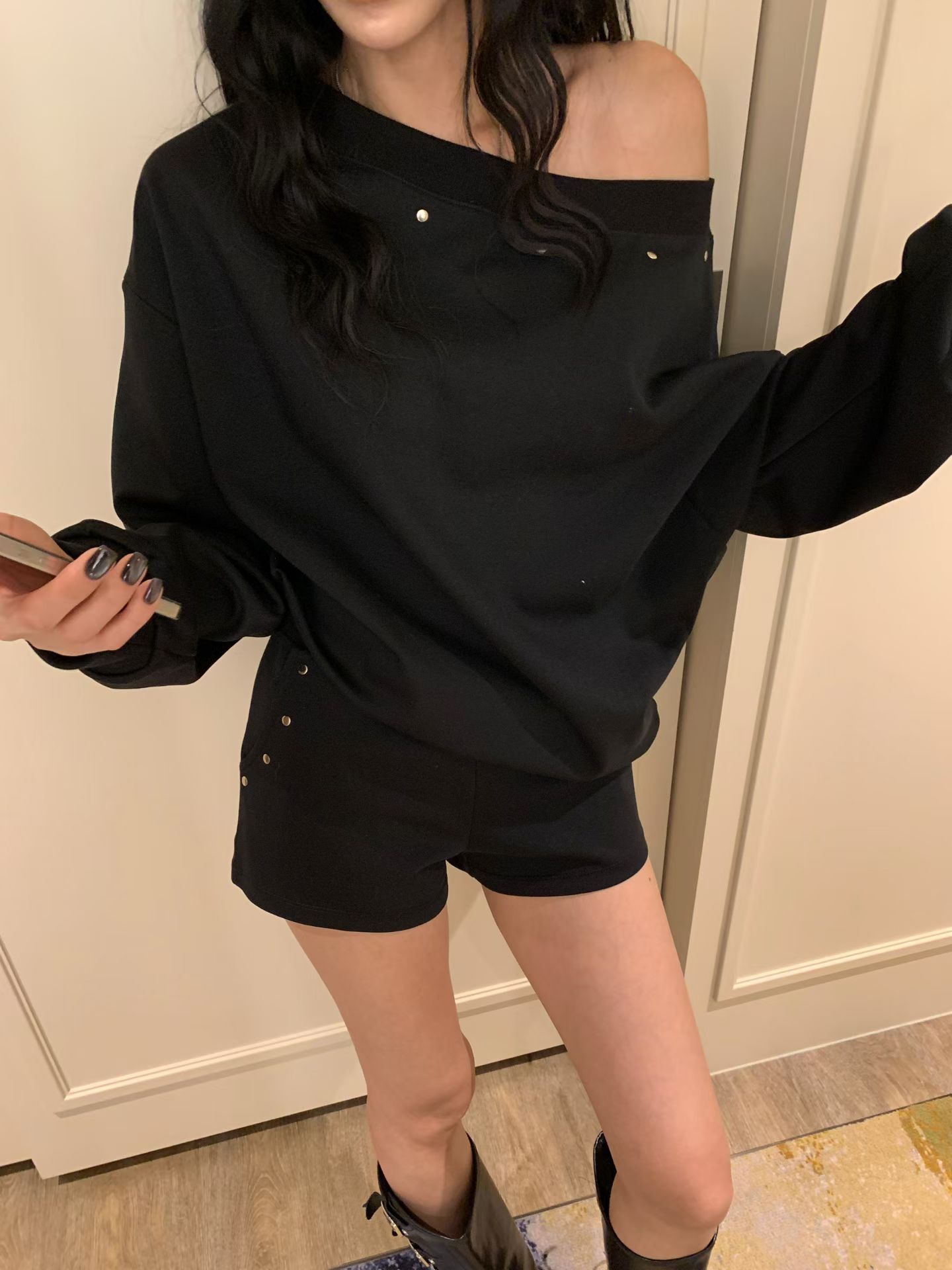 ♡正韓♡卯丁點斜肩休閒短褲套裝