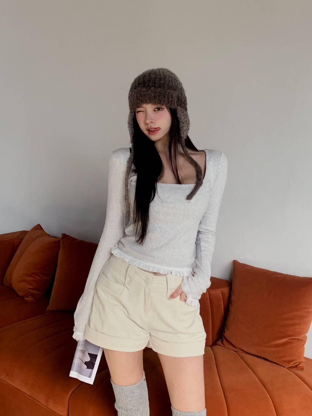♡正韓♡反摺燈芯絨短褲
