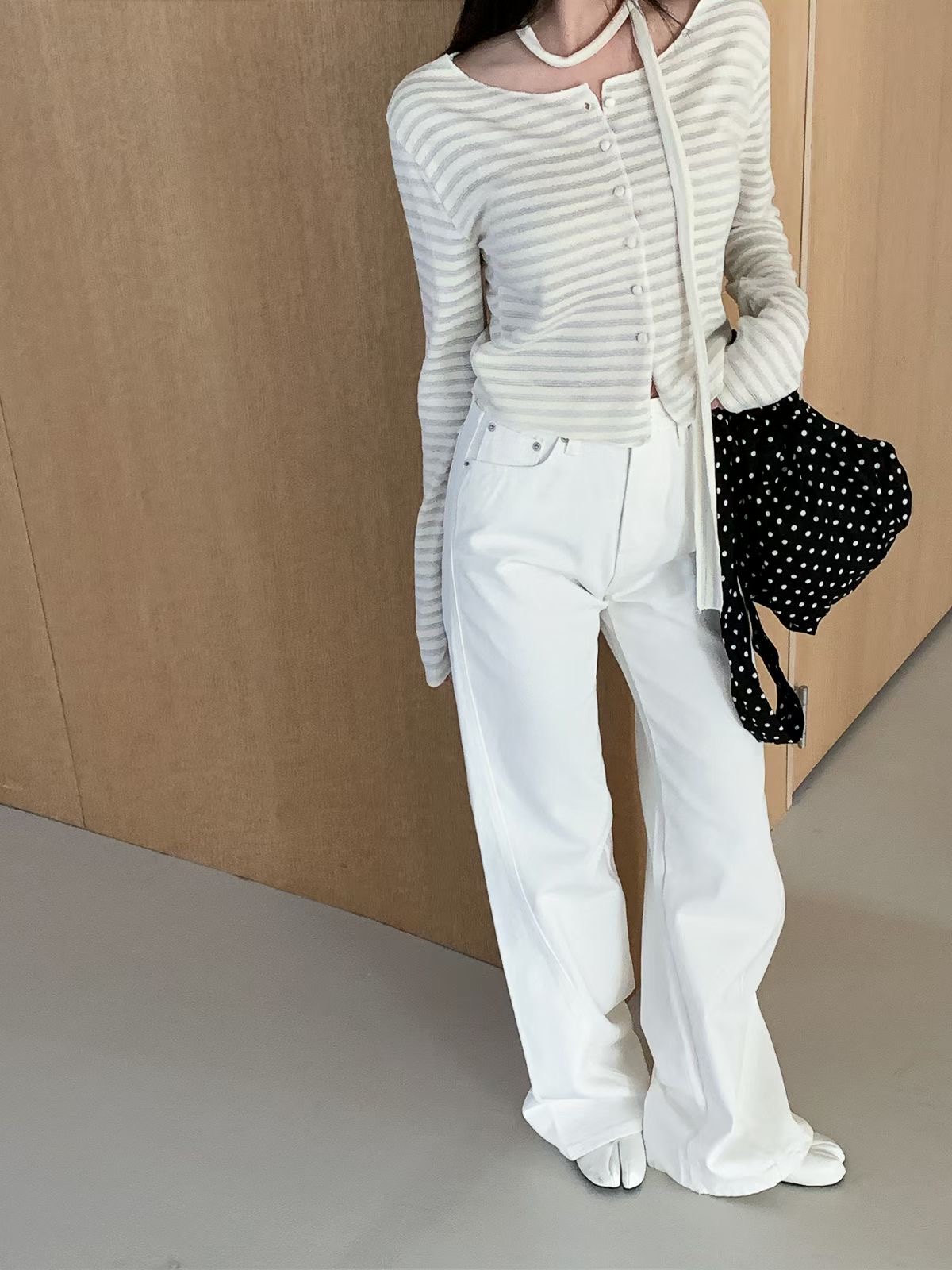 ●韓國製作時會有紅/藍/黑的顏色記號、混麻材質的布料上的小斑點,純屬正常現象。